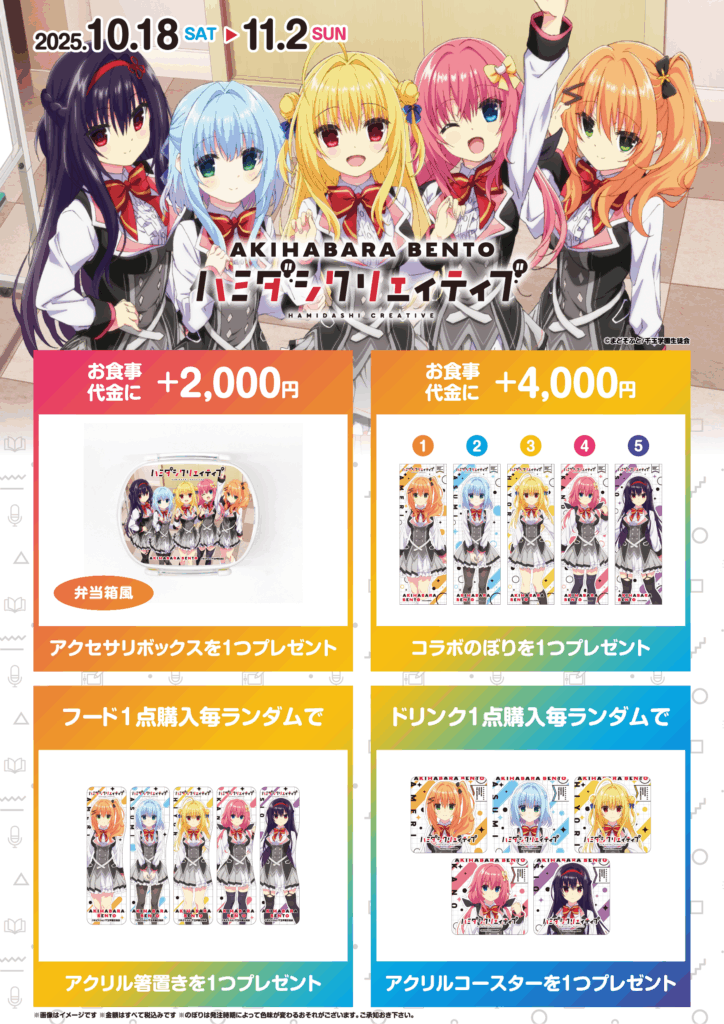 EVENT 10/18~11/02『アニメ ハミダシクリエイティブ』×AKIHABARA BENTOコラボ リバイバル 2025年10月13日 2025年10月14日 bento 2025年11月26日にBlu-ray版が発売となります『アニメ ハミダシクリエイティブ』のコラボがアンコール開催決定!期間中はコラボフード・ドリンクの提供のほか、ご注文者限定でオリジナルグッズの販売も行います!
