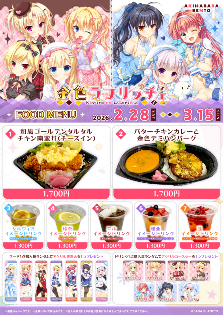EVENT 2.28~3.15『金色ラブリッチェ』×AKIHABARA BENTOコラボ開催! 2026年2月28日 2026年4月28日 bento ゲームメーカー サガプラネッツ様が送る『金色ラブリッチェ』のコラボが2月28日より開催決定!オリジナルコラボフード・ドリンクの提供のほか、オリジナルグッズの販売も行います!